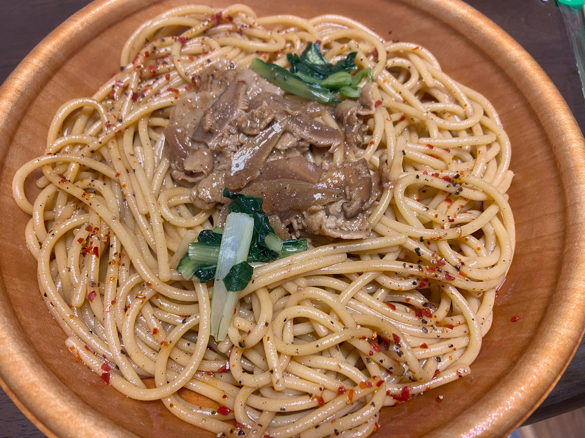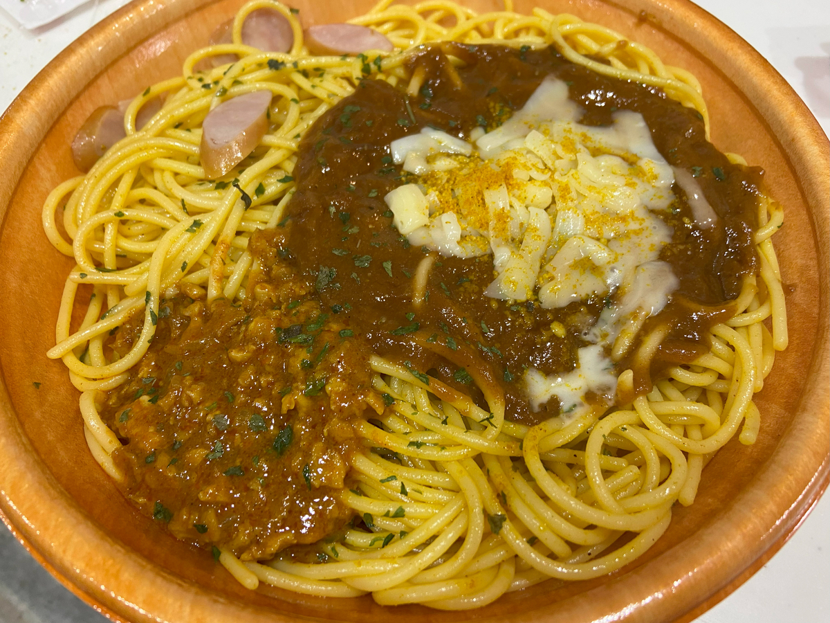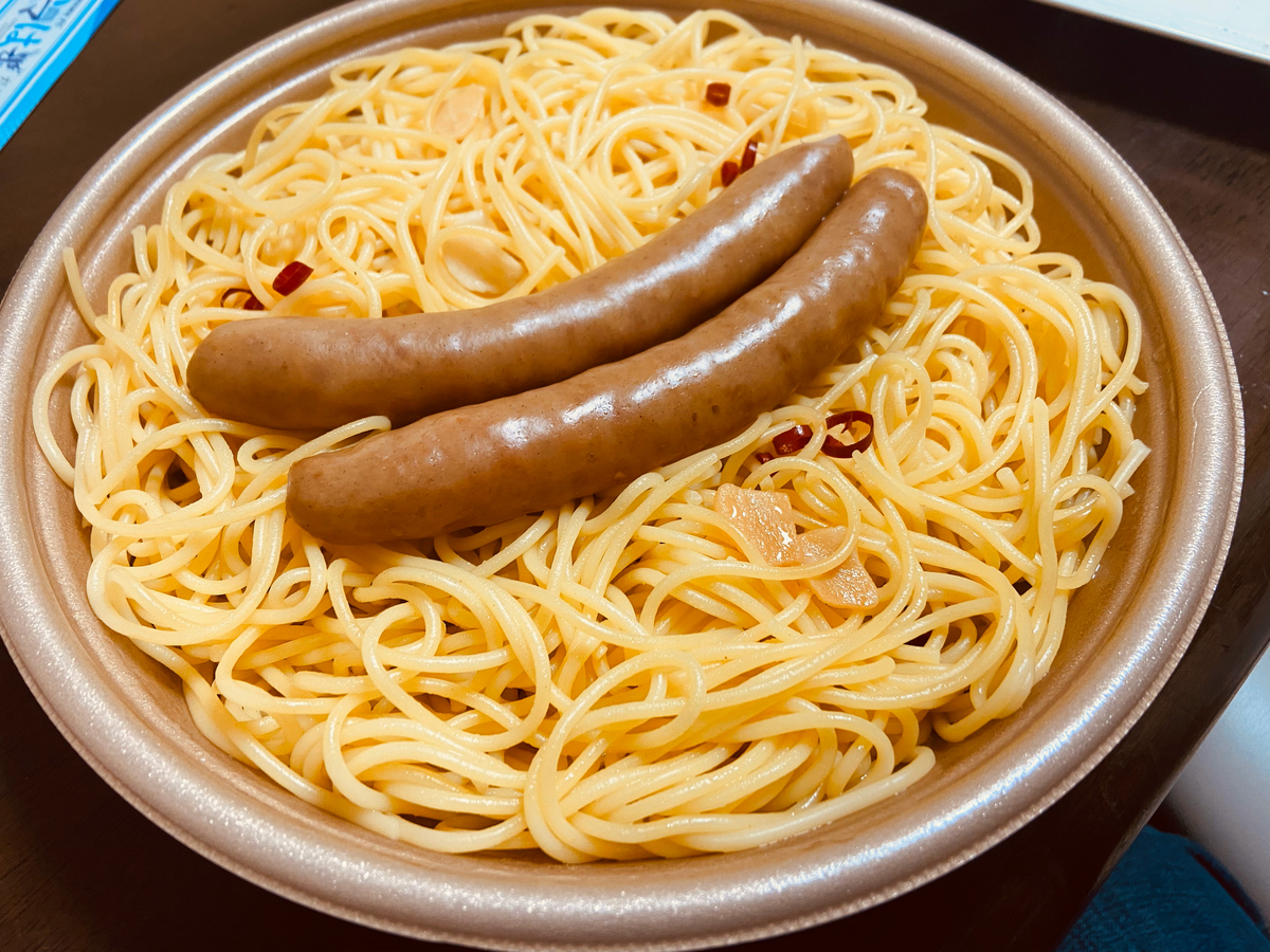 パスタのダブルサイズがメニューから消えてしまったため、このような食いしん坊スタイルになってしまった。